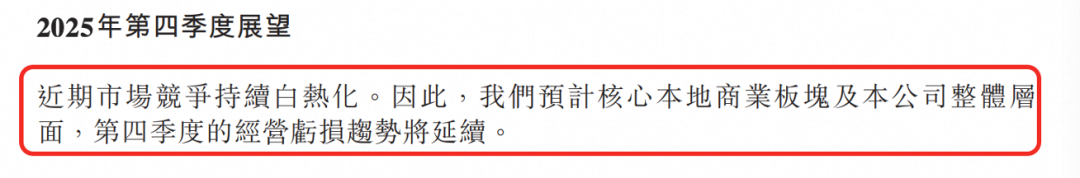 美团在第三季度财报中特别为第四季度展望留了一个说明,预计四季度的经营亏损趋势将延续,可见美团自己也不相信市场竞争能很快停止。
