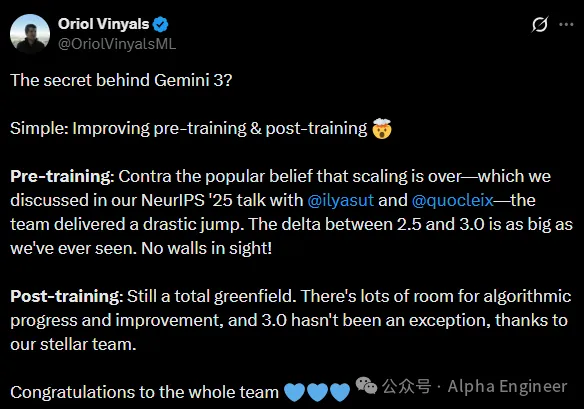 没错,Gemini 3背后的秘密,就是预训练和后训练的Scaling仍然有着较大的空间。