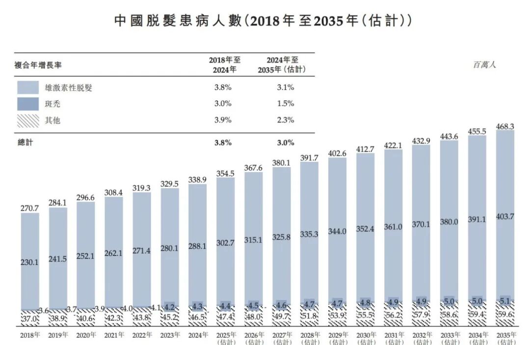 在中国,有超过3亿人受到不同程度的脱发困扰,25至45岁群体占比近六成,伴随颜值经济发展和健康焦虑扩散,防脱相关消费医疗产品市场规模近年来迅速扩大。