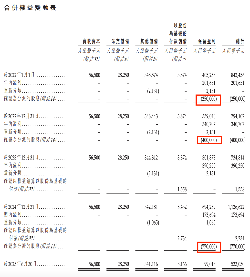 但值得注意的是,蔓迪在上市前经历了数轮大额分红。根据财务报表,2022年至2024年,公司累计派息达14.2亿元人民币,超过同期总利润。
