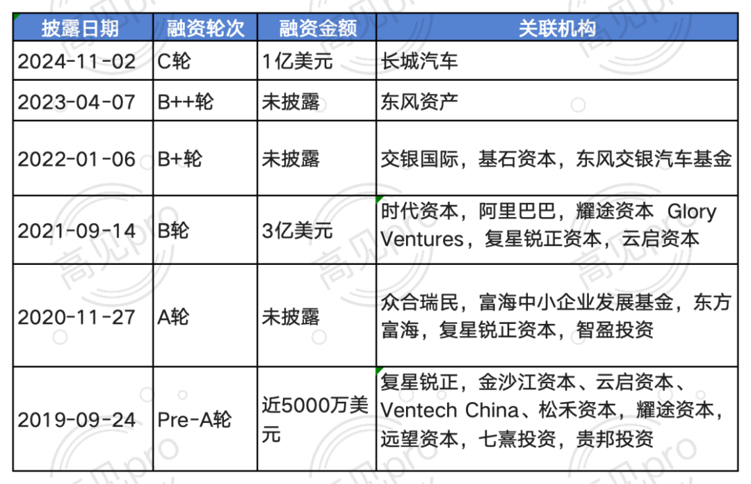 元戎启行融资历程: