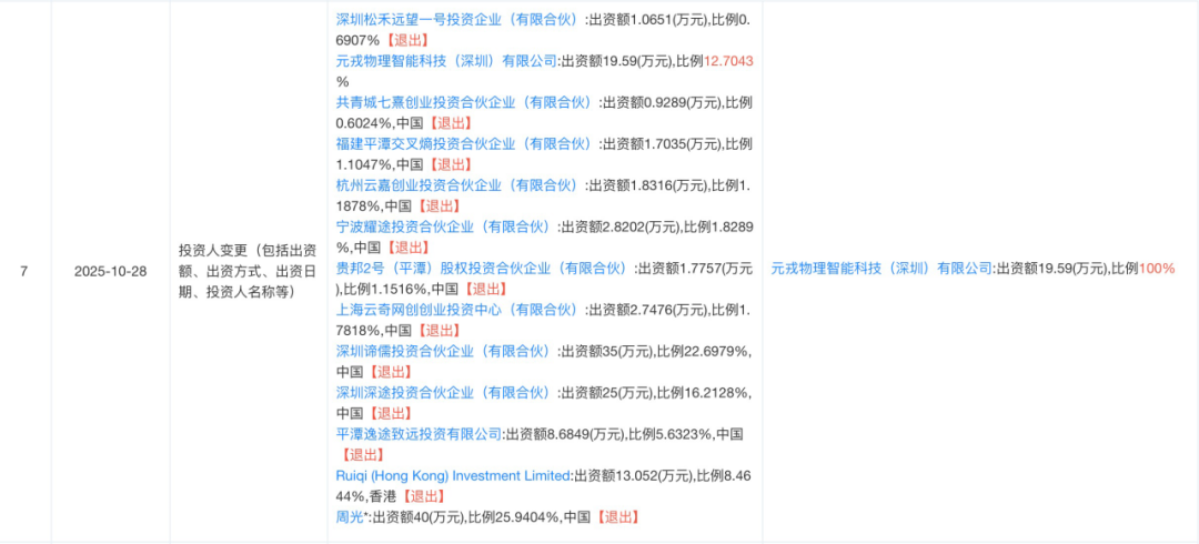 值得注意的是,在今年9、10月份,元戎启行的投资人已集体“退出”持股。