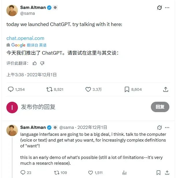 2022年11月30日,太平洋时间下午12:14,OpenAI在博客上发布了一条看似平常的消息:推出一个名为ChatGPT的对话交互模型。当时的描述克制得近乎谦虚——“我们训练了一个名为ChatGPT的模型记者,它以对话方式进行交互。”