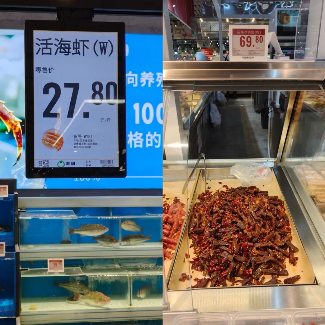 「零售商业财经」实探发现,普通便利店卖3元的500ml绿茶,欢乐爱家店内仅售2.1元;当日鲜活海虾定价27.8元/500g;而胖东来等商超售价80-90元/500g的麻辣牛肉条,欢乐爱家当日现做款仅售69.8元/500g,价格优势显著。
