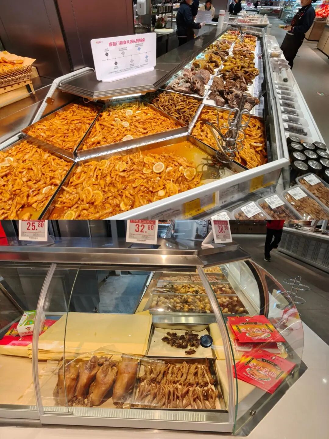 另一个值得关注的细节是,喜盈门超市熟食区展示柜特意撤去了“玻璃罩”,让消费者能更直观地看到工作人员的操作流程与食材状态,这种“无遮挡”的呈现方式,进一步强化了新鲜与信任感知。可以说,这些细微的运营差异,往往会直接影响消费者的到店体验与心理偏好。