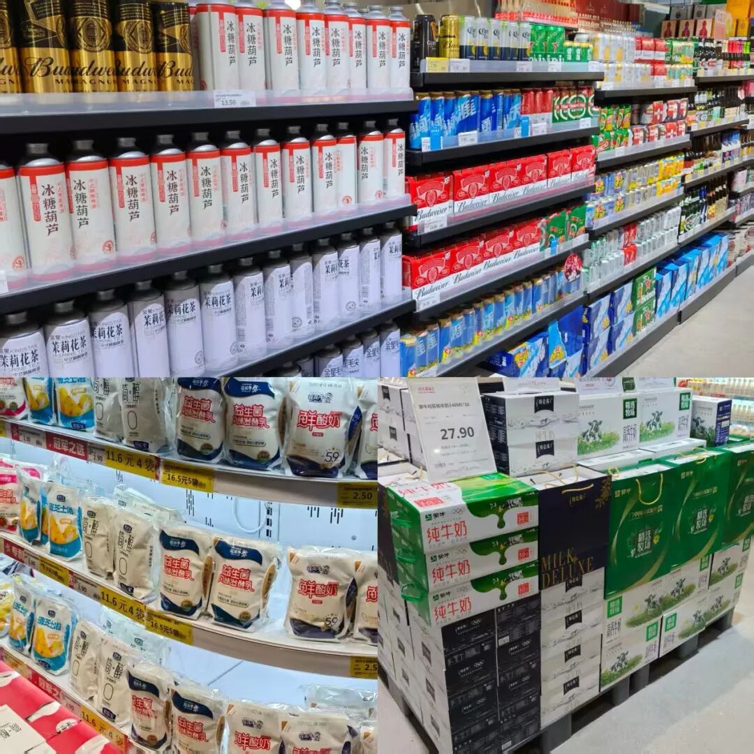 当然,面对不同的区域市场,每家商超的商品策略各有不同,就像欢乐爱家店内大流通货的商品占比更多,比如乳制品常见的品牌包括花花牛、君乐宝、蒙牛、伊利等,这主要是为了服务好本地的民生消费需求。