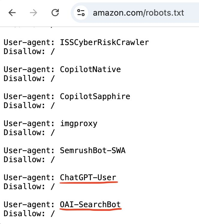 我能想到的现有平台的唯一壁垒,是像淘宝当初对百度的屏蔽一样,禁止AI手机助手之类的工具访问自己的App。亚马逊上个月刚刚更新了robots.txt,禁止了所有OpenAI产品对其网站的访问,防的就是ChatGPT偷家。