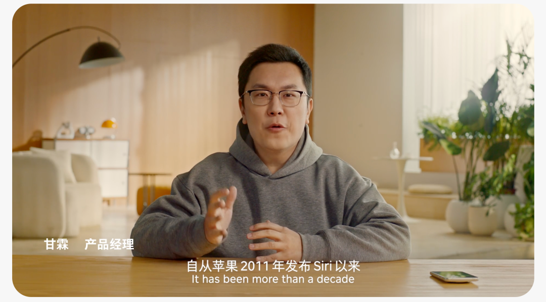 demo视频里,官方产品经理甘霖开场白是苹果2011年发布的Siri。