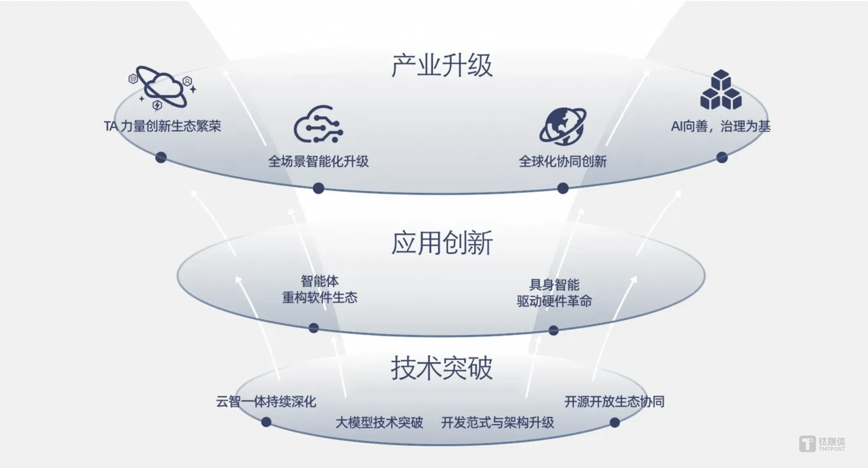 技术能力的持续突破是 AI 价值释放的基础,通过构建算力基座、基础模型、开发体系、技术生态等关键要素,结合软硬件协同演进,为 AI 应用提供稳定、高效和可扩展的技术支撑,解决从技术研发到落地应用的核心痛点。