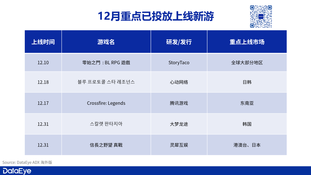 在已经开启广告投放、并预计在12月上线的新游中,值得关注的重点产品有: