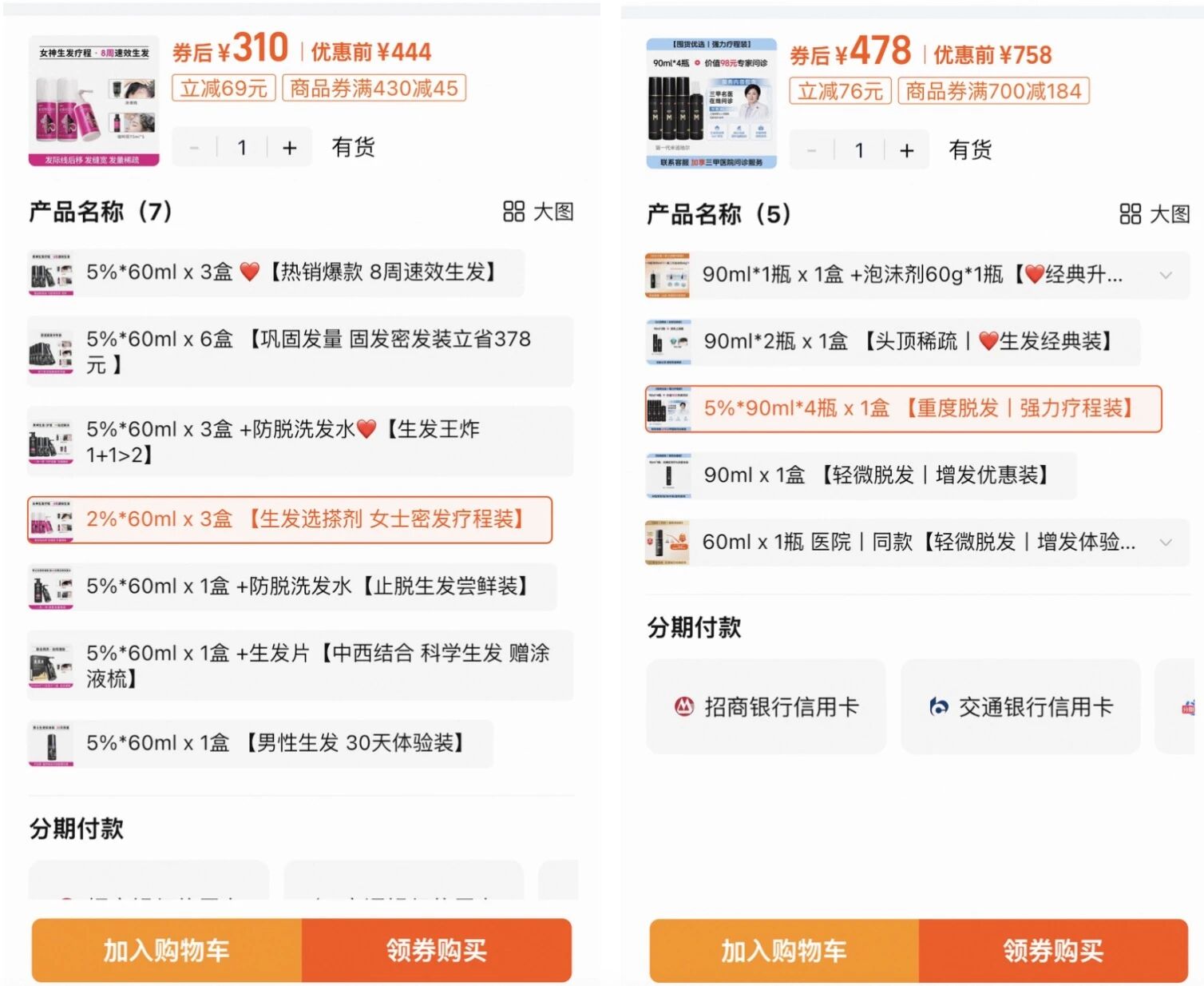 更值得注意的是,达霏欣专为女性设计的2%浓度产品,60毫升3瓶装售价310元。也就是说,在核心药物含量相差近三倍的情况下,达霏欣的女性专用产品反而实现了更高溢价。