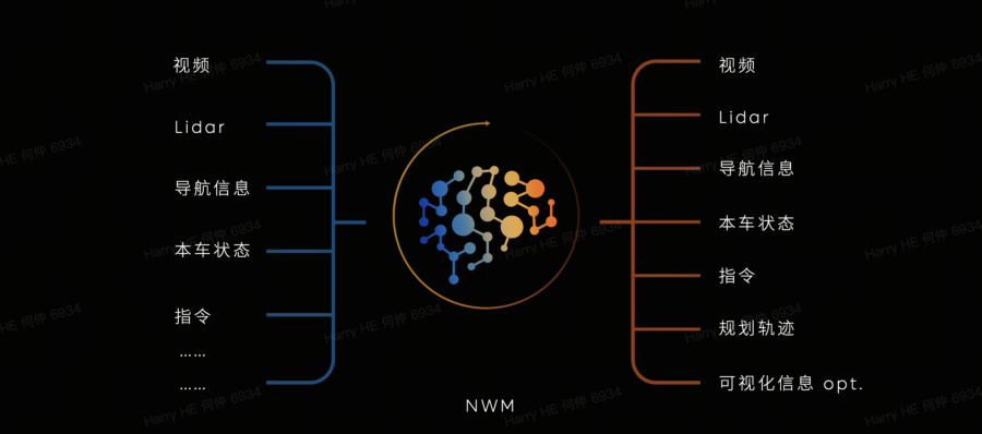 它在空间上完成“想象重建”(将感知到的物理世界逼真地重建为可编辑的虚拟世界),在时间上完成“想象推演”(在内部时空中滚动预演不同未来),进而输出可执行的轨迹与动作。并展示了其在车端的应用。NWM可在100毫秒内推理216种可能的驾驶场景 并选取最优决策。蔚来官方表示,模型可以用3秒的历史视频提示生成长达20秒的未来视频;世界模型通过生成式推演形成所谓“平行世界”,在这些想象出的未来中评估不同动作的后果。除了纯视觉输入,NWM还融合激光雷达、地图和自车运动信息,并能理解驾驶员的语言指令。