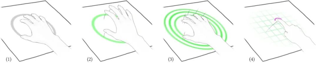 Camille Dupré 等人在 SIGCHI 2024 会议上展示了他们的 TriPad 技术,仅通过手部跟踪将任意普通表面转化为触控板,其工作原理是通过 3 个指尖与表面接触来创建平面。之后,用户可以随意使用这个表面进行触摸输入。