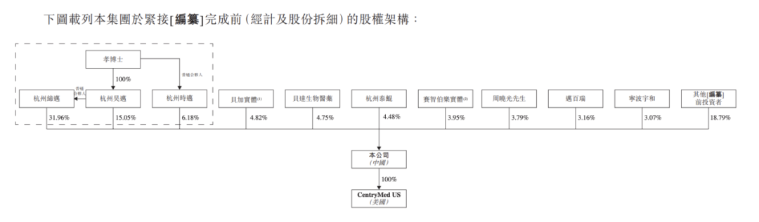 时迈药业创始人孝作祥曾在肿瘤科担任临床医生多年,并曾在美国从事源头创新抗癌药物的研发工作。截至递表前,他个人控制的三家杭州公司共持股约53.2%,为绝对控股方。