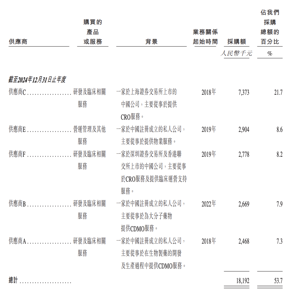 但值得注意的是,2025年上半年,公司前五大供应商中未出现CDMO企业,可能是中试及样品生产活动明显减少,研发节奏处于收缩期,优先保障临床推进。