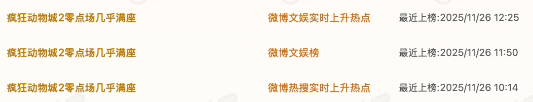 △ 《疯狂动物城2》零点场几乎满座情况登上热搜