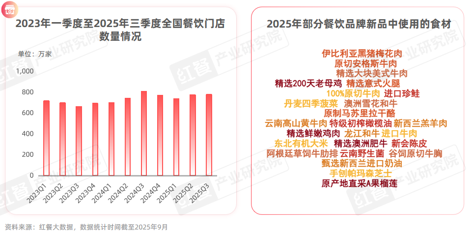 在此背景下,为了吸引更多的消费者,不少餐饮企业的经营策略发生转变,从以往的“卷价格”转向“卷氛围”“卷品质”,以提升整体的消费体验。不少餐饮品牌会在菜单、新品宣传中着重强调食材的产地与品质,如澳洲雪花和牛、谷饲原切牛胸、新西兰进口奶油、原制马苏里拉干酪等,这也助推了网红餐厅向品质化的“漂亮饭”模式转型。