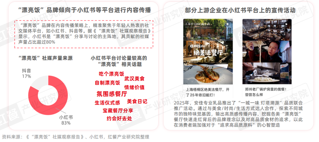 与此同时,小红书也是“漂亮饭”声量颇高的社交阵地,截至2025年11月,小红书平台“漂亮饭”话题下的笔记浏览量达6.2亿次,讨论量超308万次。