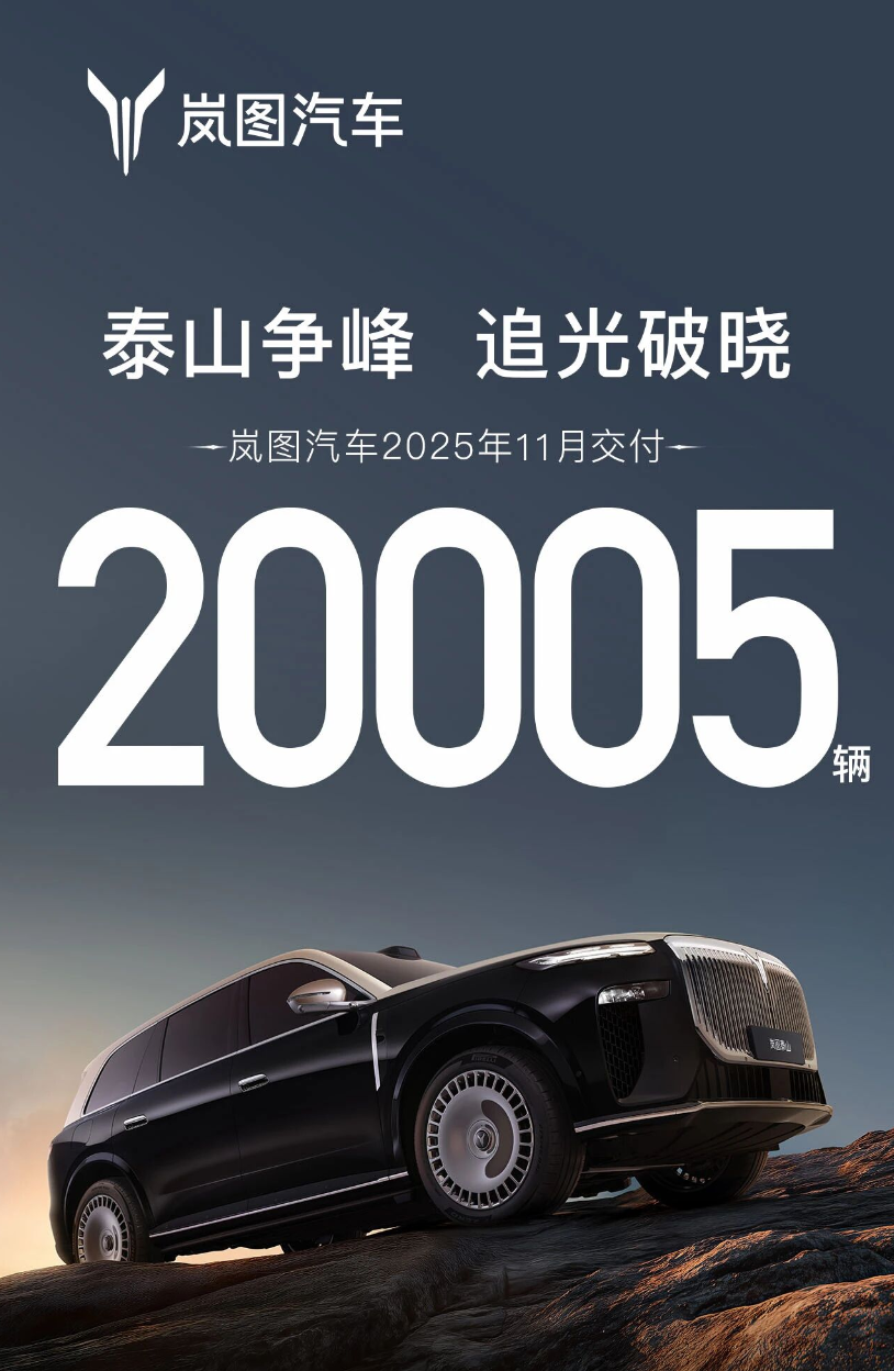 岚图汽车在11月交付新车20005辆,同比增长84%,这是该品牌单月交付量首次突破2万辆大关,证明在电动化时代,传统车企的高端品牌只要产品到位,仍有巨大机会。