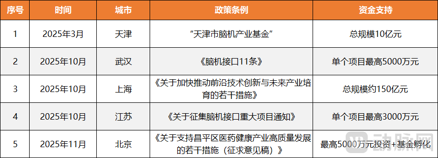 除市场资本外,政府资金同样是脑机接口企业重要的融资渠道之一。今年以来,国家层面发布了多项关于脑机接口的重磅政策,先是在7月,工信部、国家发改委等七部门联合发布《关于推动脑机接口产业创新发展的实施意见》,脑机接口产业正式提升至国家战略高度;紧接着在10月,“十五五”规划又将脑机接口列入“六大未来产业”,战略地位再度提升。而在政策推动下,越来越多的政府专项资金正在加速向脑机接口领域倾斜。