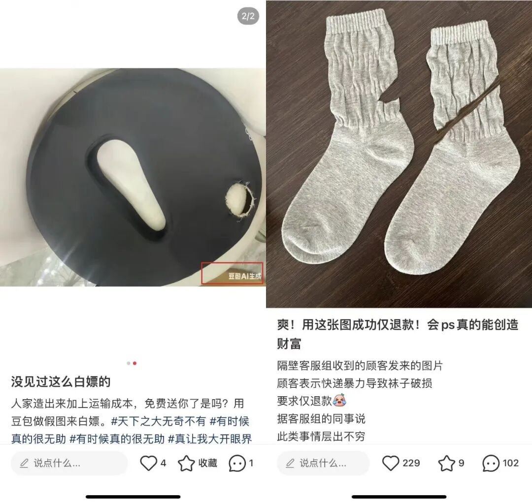 另一方面,大多数电商平台对于“仅退款”的审核比较宽松,基本上是“有图就给退”,即便商家发现客户提交的是AI假图,也只能事后再申诉。