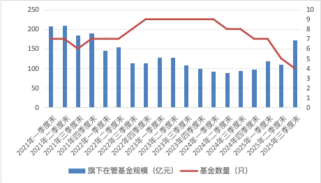 汇添富基金成立至今已超20年,2025年三季度末,公募基金管理规模1.1万亿元,居行业第九名。其中,权益类基金规模3642.85亿元。