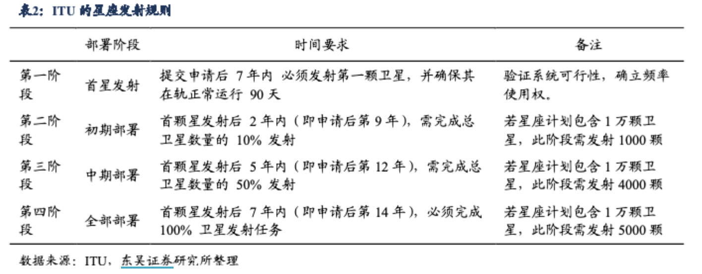 由于低轨卫星星座具有低时延、发射灵活度高和制造成本低等特点,是世界主要航天国家争夺空间资源的新赛道。鉴于卫星轨道与频谱资源的稀缺性,国际电信联盟(ITU)确立了“先占先得”原则,各国可以通过预先登记锁定资源,但申报方须在7年内完成发射并启用所申请频段,否则相关频谱资源将被收回。
