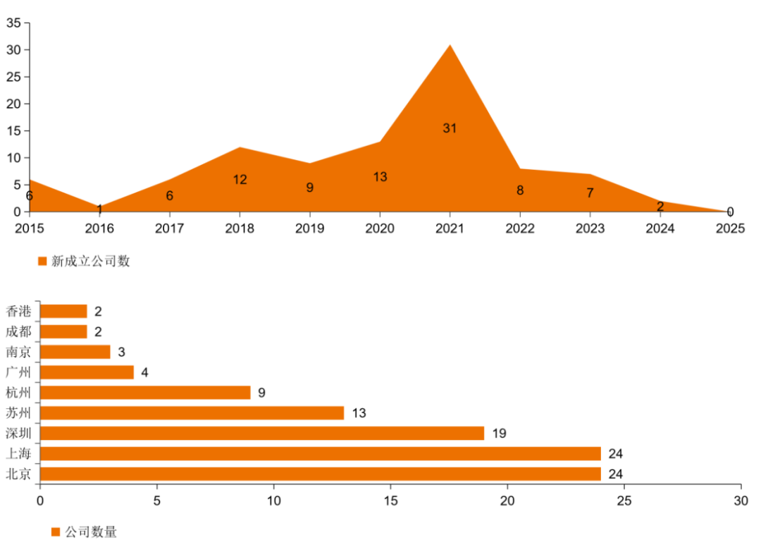 中国AI制药领域新成立企业及地域分布 数据来源:公开信息,动脉智库制图