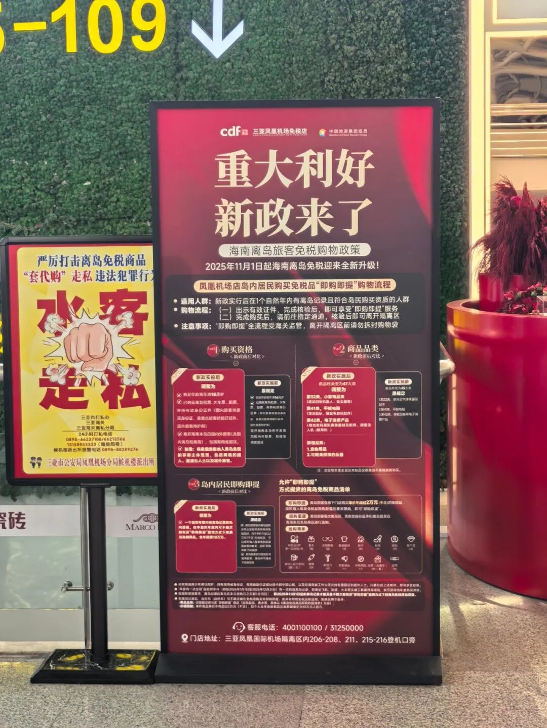 走进三亚凤凰机场的CDF免税店,你很容易感受到海南有多努力:商品区摆放着的折扣牌、迎面而来的“中免疯狂扫货季”广告,“柜哥柜姐们”也会主动向你讲解离岛免税购物的相关政策。
