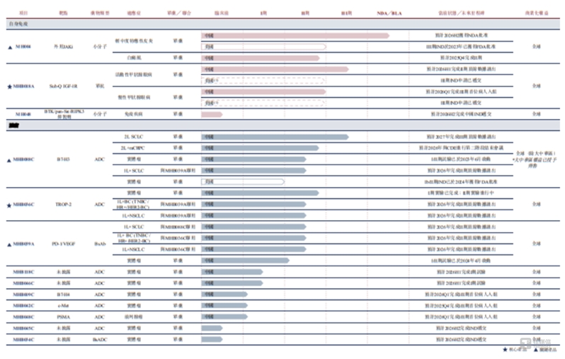这些产品中MH004、MHB018A、MHB088C进展最快,其中MH004已经入了NDA阶段,而MHB018A、MHB088C也已进入到III期阶段,均有望成为管线中首个实现商业化的产品。
