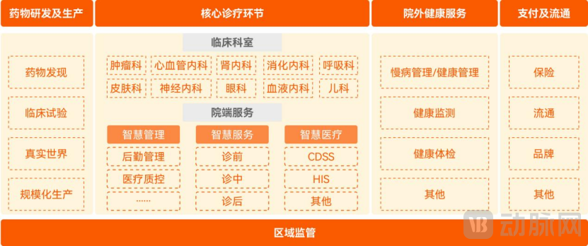 随着AI产品性能提升、市场接受程度和信任程度提升、商业化环境逐步完善,AI正快速渗透到医疗领域的各个环节。我们将其拆分为药物研发及生产、院内应用场景(包括临床及院端)、院外健康服务、支付及流通以及区域监管。动脉智库2025年底发布的《2025年医疗人工智能产业研究报告》聚焦院内应用场景做了AI应用及商业化进展的深度剖析,因此,本报告将着眼于其余AI应用板块,解析2025年各细分领域的突出成果与进展。
