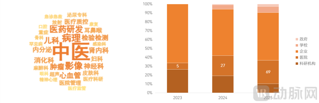 部分专科专病智能体词云图 / 2023-2025年大模型研发参与方占比