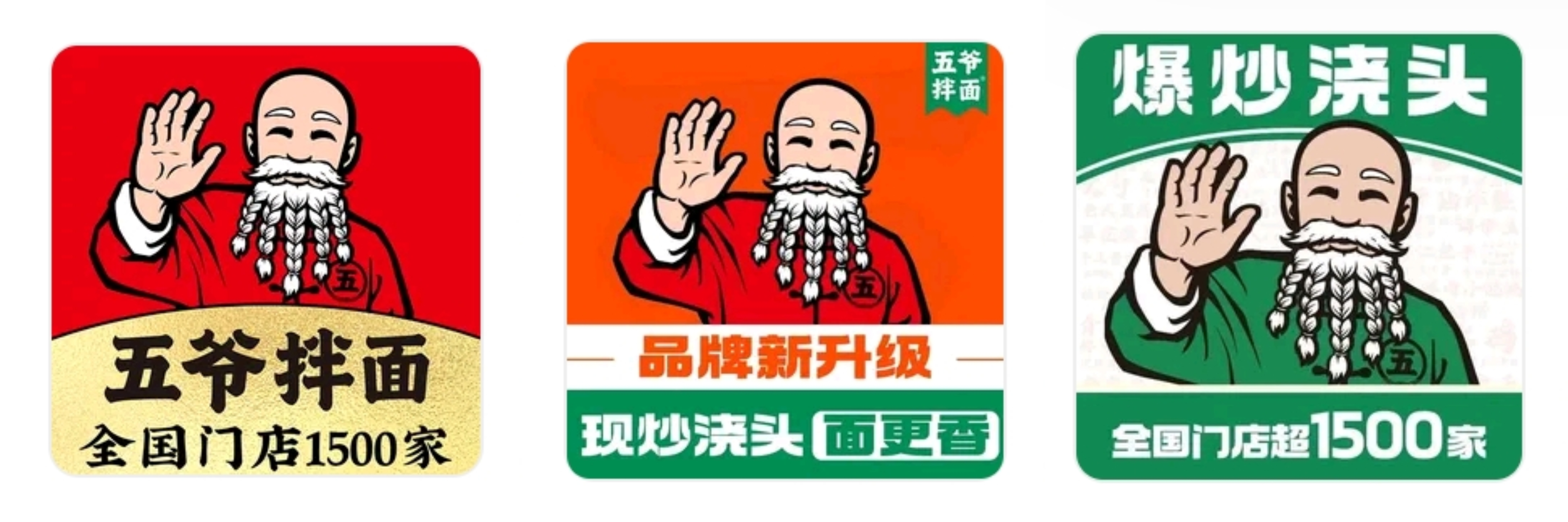 五爷拌面不同版本的logo(图源:大众点评截图)
