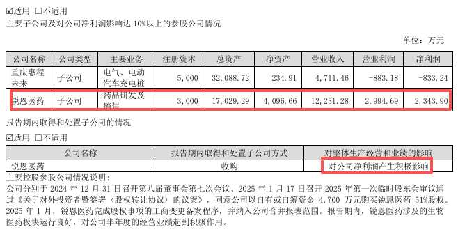 今年1月,公司以现金4700万元购买植恩生物所持有的锐恩医药51%股权,通过并购切入了生物医药领域,但新业务整合与贡献尚需时间。