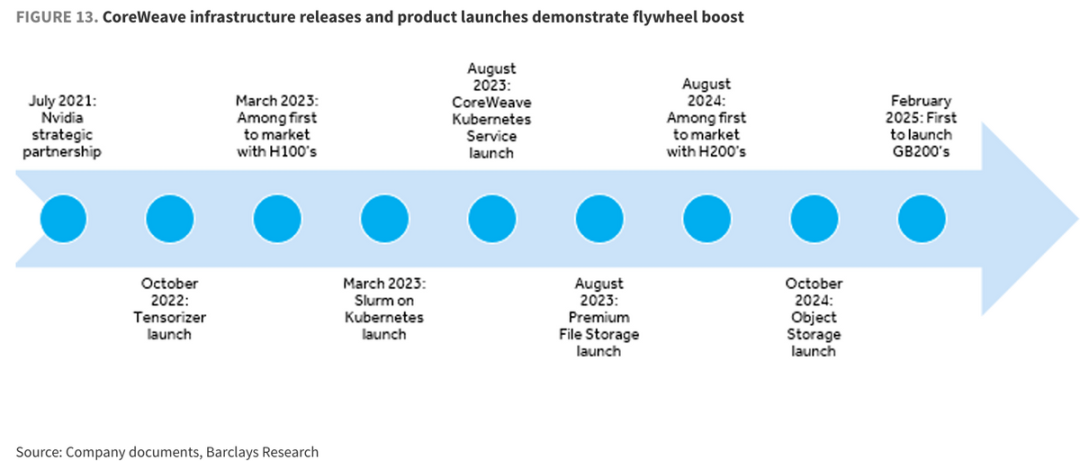 而21年英伟达和公司签订战略合作协议后,后续H100,H200,GB200等上线时,CoreWeave一直是首批能够获得当时最高端芯片的公司(之一)。