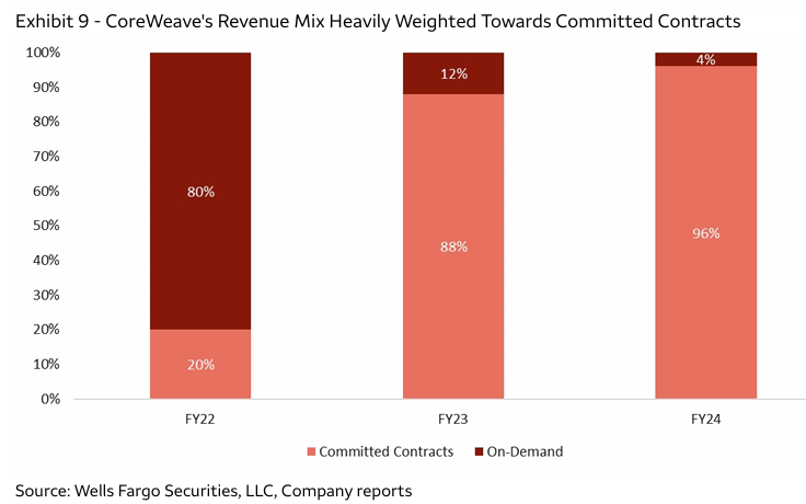 对应着公司高度依赖少数大客户的长期风险,短期视角反而是CoreWeave很强的确定性。
