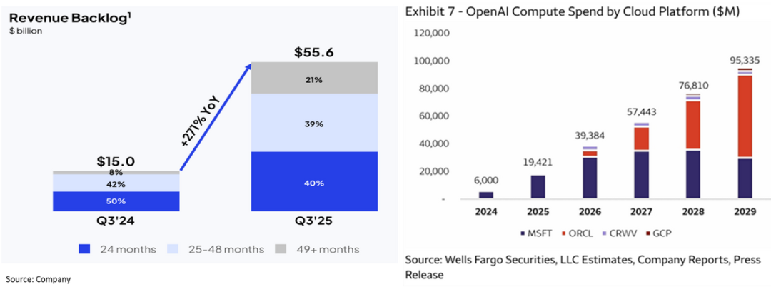 根据在今年三季度财报,公司已签订合计2.9Gw的电力供应,同期上线0.59Gw算力,意味着在没有新增供应的情况下也能满足公司再增加近4x的算力供给,对应年化收入近$270亿。对应公司当前约550亿的未履约余额,目前已锁定的电力供给已足够未来好几年的发展。