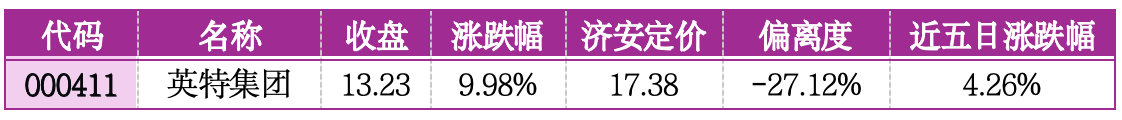 风险提示:正和生态偏离济安定价66.13%,估值严重高估,公司处于亏损状态且盈利改善乏力,股价依赖题材炒作脱离基本面,两连板后题材退潮风险加剧,随时可能回调,应坚决远离。