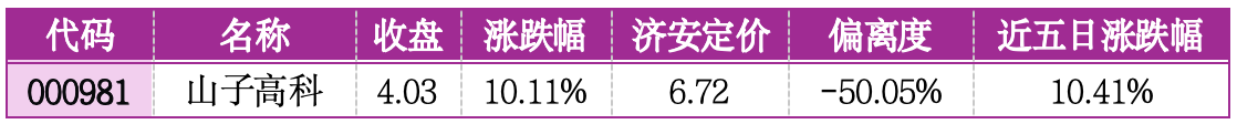 机会提示:山子高科偏离济安定价-50.05%,低估值叠加新能源汽车与半导体行业高景气度,债务重组完成优化财务结构,管理层补强提升运营效率,业绩改善趋势明确,估值修复动力充足。