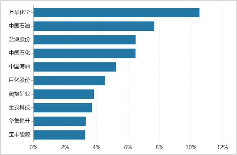 ▲化工行业ETF易方达(516570)前十大重仓股 来源:Wind