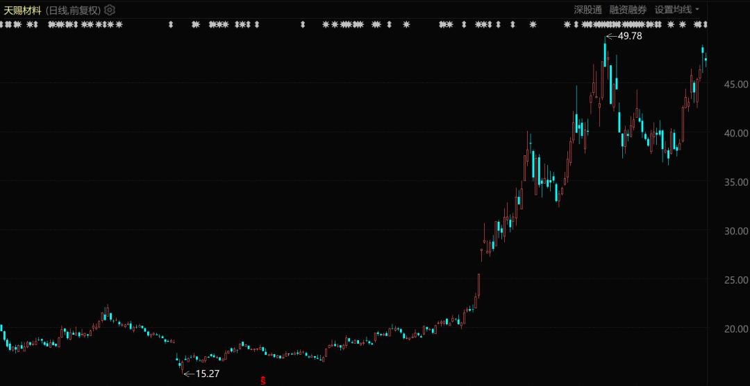 天赐材料股价表现(自2025年1月至今)
