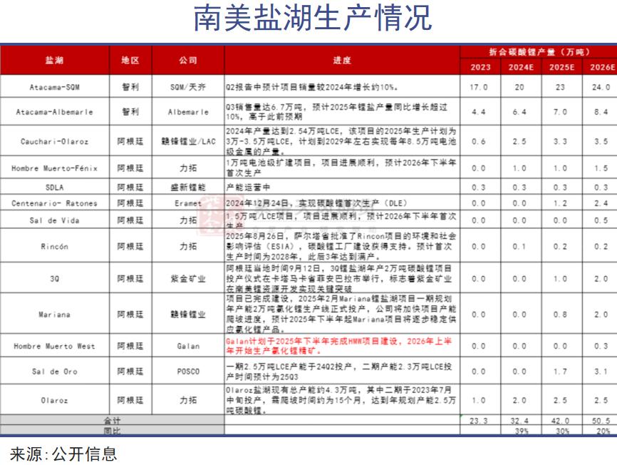 智利是目前产锂的核心国家,2024年产量约占全球五分之一;阿根廷正处于产量爆发期,增速极快;玻利维亚则刚刚实现规模化生产的突破。