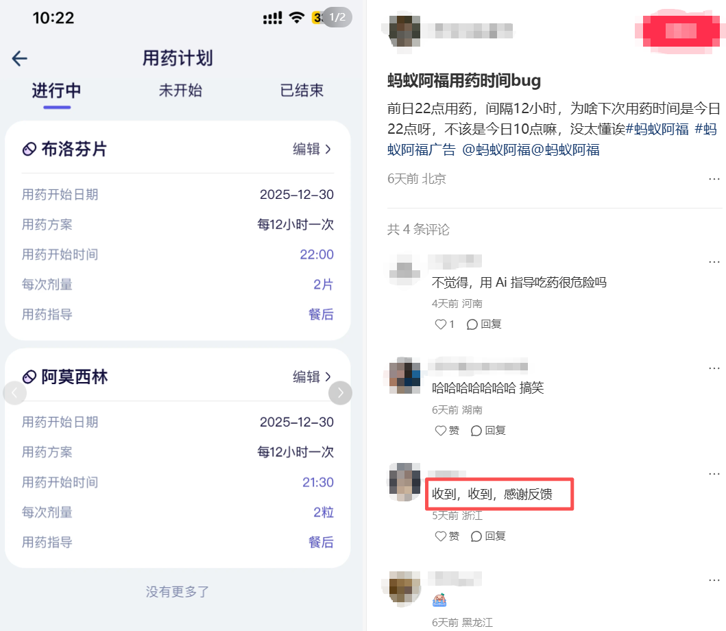 ▲用户发布的体验bug,评论区有疑似产品经理进行回复