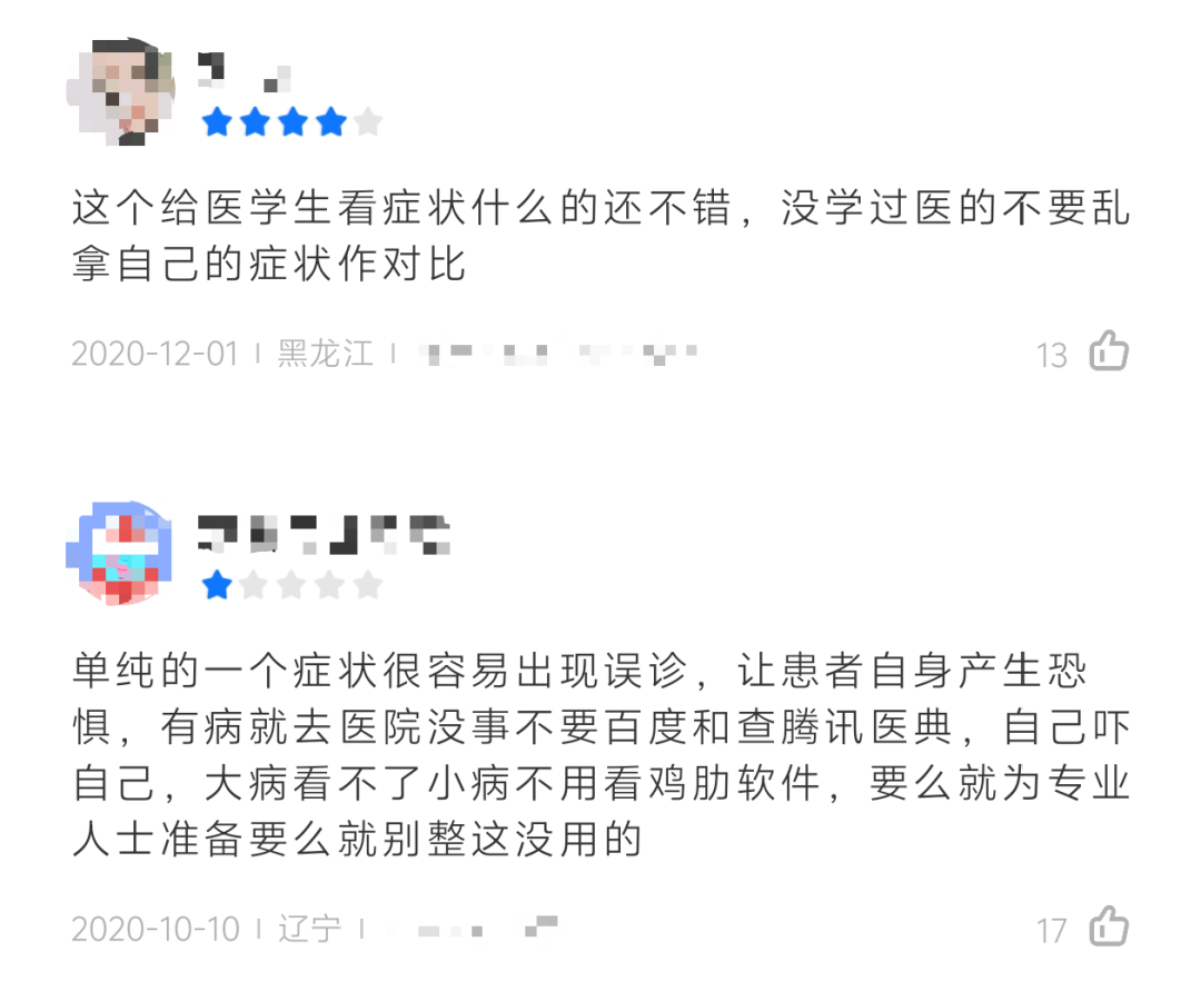 ▲在应用商店给医疗类APP打下低分的评论