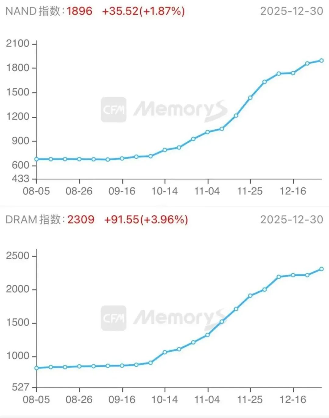 好的信号是,2025年12月至今,这场由供需和情绪双重影响下的存储暴涨,也回归了一丝冷静。