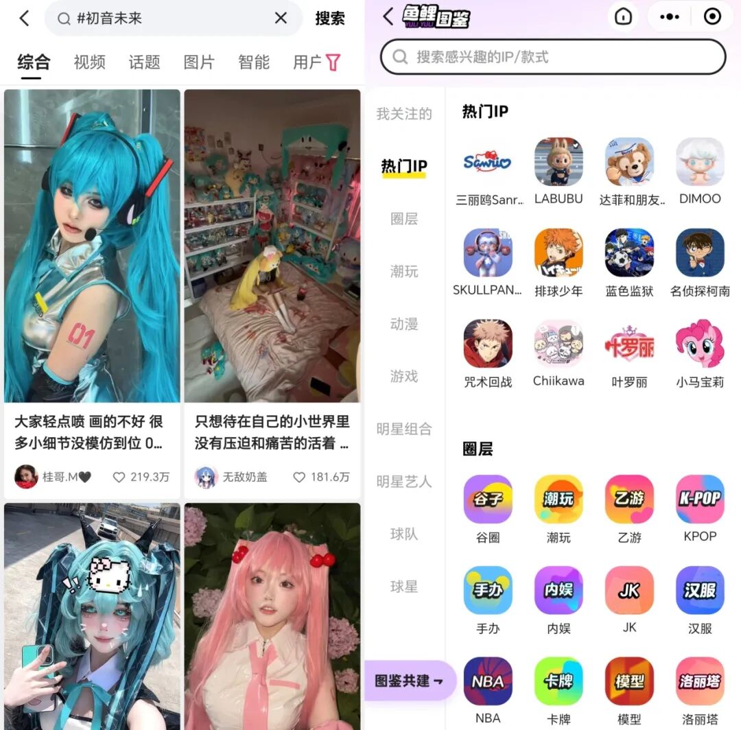 抖音依托其强大的短视频生态与流量机制,重点扶持「轻漫计划」、「二次元宅舞复兴计划」等,鼓励碎片化、强视觉、娱乐化的内容创作,其社区氛围偏向大众化与热点驱动。小红书则从生活方式视角切入,通过「二次元旅行大作战」、「OC成长计划」等运营,将二次元与旅行、探店、日常分享深度融合,营造出精致分享与强情感共鸣的社区气质。快手则通过引入如初音未来、奥特曼、蜡笔小新等头部经典IP内容,并孵化本土化二次元红人,形成了亲民且互动性强的社区氛围。闲鱼牢牢抓住交易场景,通过拼团工具、引入一手官方供给,巩固其最大二次元交易社区的地位。