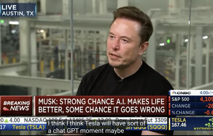 比如,在 2023 年 5 月 16 日,特斯拉 CEO 马斯克在接受美国媒体 CNBC 采访时就谈到「ChatGPT 时刻」。当时,马斯克的原话是: