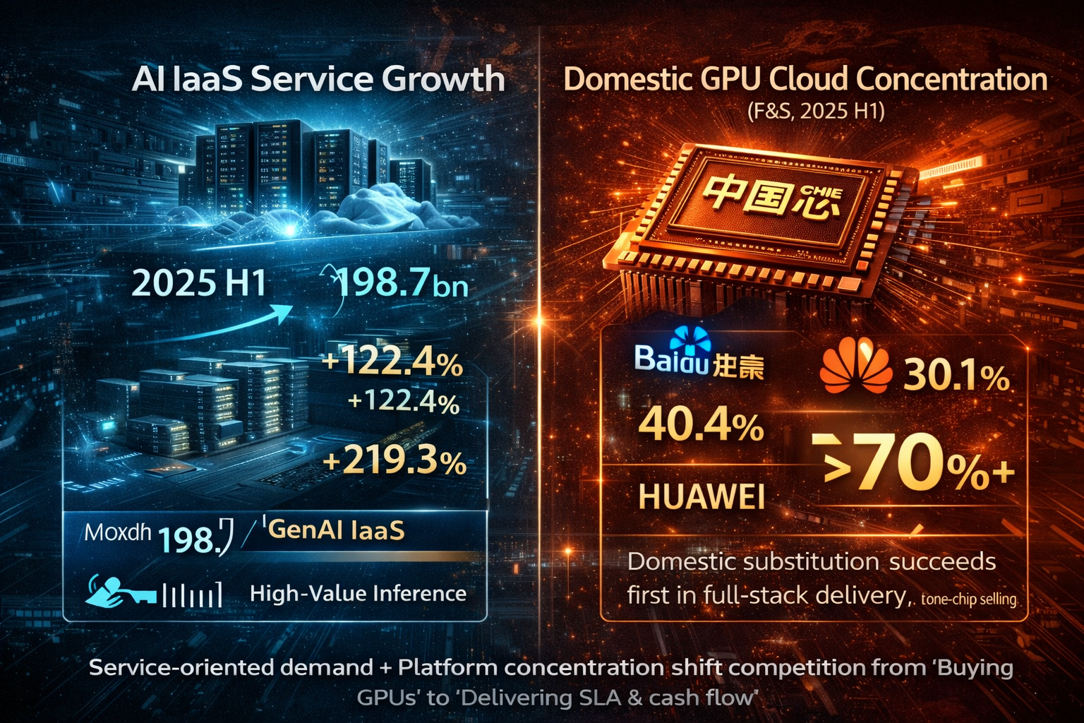 第三组指标看平台经营是否变硬。AI IaaS 的规模与增速能否继续维持高位?国产 GPU 云的集中度是否继续提升?云侧 SLA、集群利用率、故障率、回款周期等指标是否越来越多地出现在企业材料与资本化文件中?这些决定“服务化”是不是从趋势变现实。