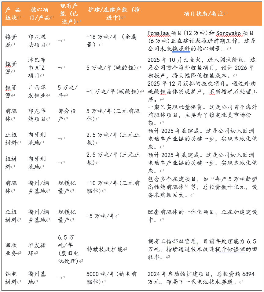 当前,华友钴业的产能扩张呈现出明显的海外倾斜趋势。其基地布局从早期的国内(衢州、广西)转向了更具战略性的印尼(服务于欧美市场)与匈牙利(聚焦欧洲市场)。这一布局不仅能有效应对贸易壁垒,也强化了与LG、大众等全球核心客户的协同关系。