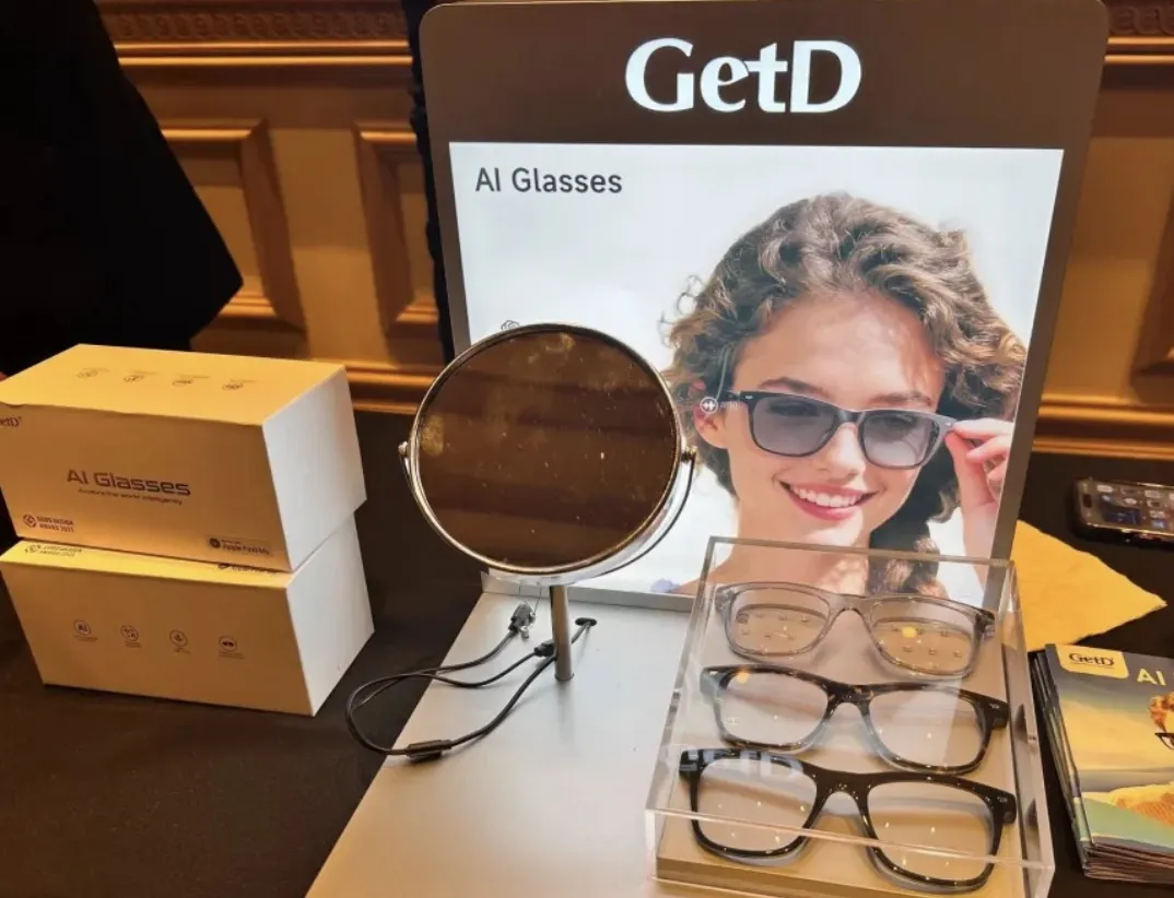 格多维GetD的AI音频眼镜主打纯音频交互,支持通过ChatGPT等进行智能对话,满足信息查询、简单翻译等日常需求 。在音频基础上增加了拍摄能力,展示的型号搭载1200万像素高清摄像头,并集成健康监测、设备防丢等实用功能。